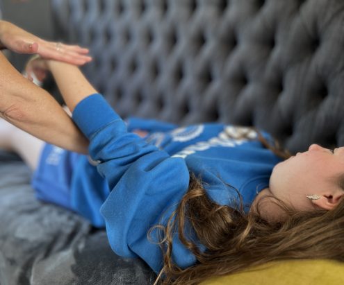 Kinesiology is done fully clothed, lying comfortably on a treatment bed. You are required to position your limbs in a variety of predetermined positions, while receiving light pressure from your Kinesiologist for two to three seconds, allowing your muscle response to indicate your bodies imbalances.